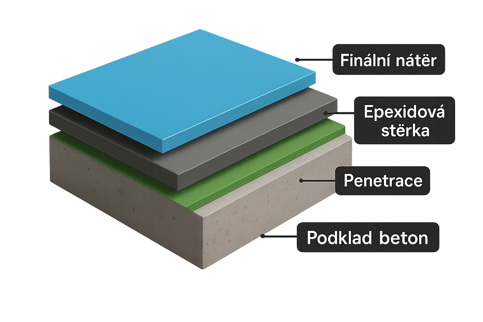 Epoxidová stěrka s prosypem křemičitého písku o tloušťce 2 - 3 mm je vhodná téměř do všech prostor jako jsou výrobní haly, sklady, dílny, parkingy a garáže. Má výbornou mechanickou odolnost a lekce se udržuje.